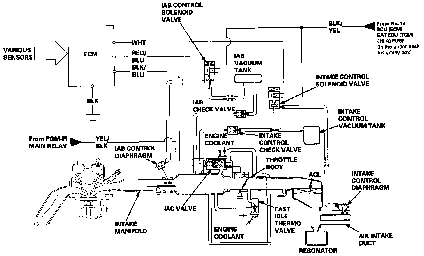 The system supplies air for all engine needs. It consists of the intake air pipe, Air Cleaner (ACL), intake air duct, Throttle Body (TB), Idle Air Control (IAC) Valve, fast idle thermo valve, and intake manifold.