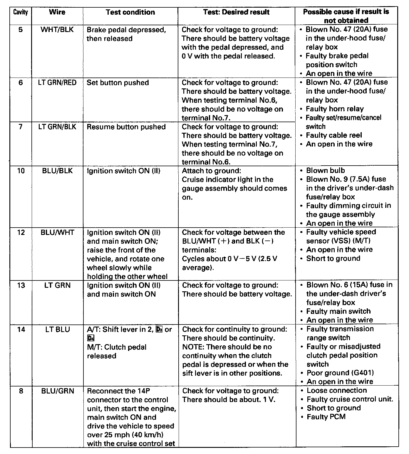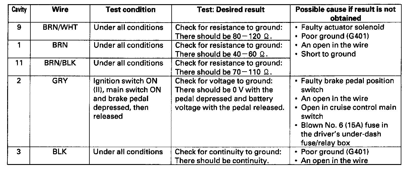 Cruise Control Module: Testing and Inspection