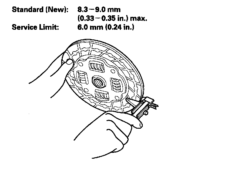 9. Measure the clutch disc thickness. If the thickness is less than the service limit, replace the clutch disc.