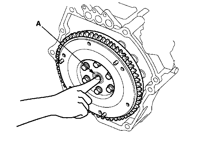 2. Remove the flywheel mounting bolts in a crisscross pattern in several steps, then remove the flywheel.