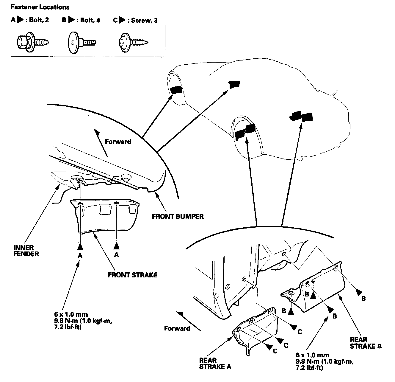 Remove the strakes as shown.