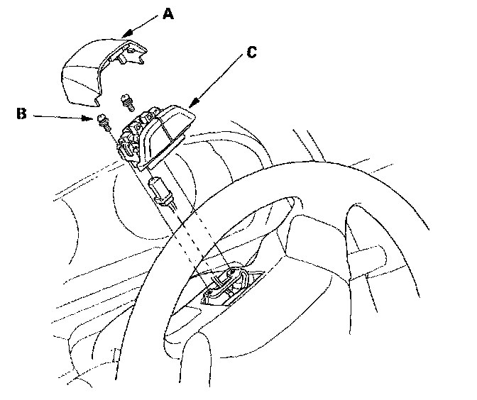 2. Remove the two screws (B) from the voice control switch (C), then remove the voice control switch.