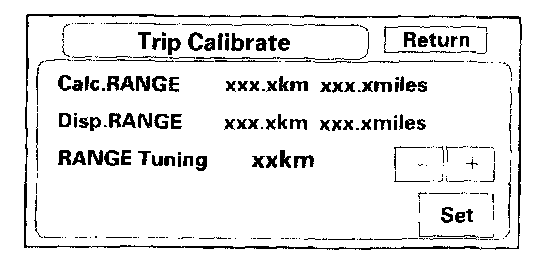 By holding down the MENU button while on the "Trip Information" screen, you will see the screen above. This screen allows you to adjust the vehicle range (distance to empty).