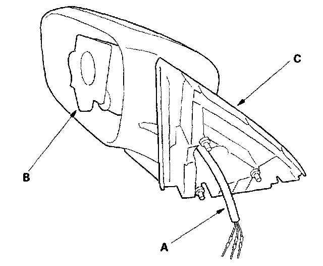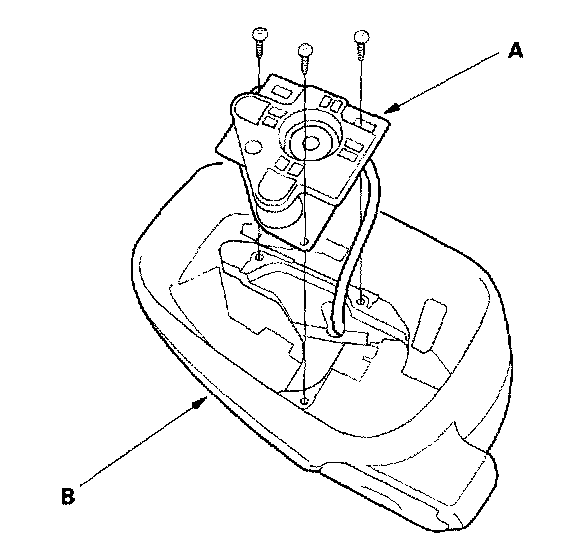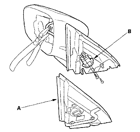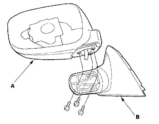 7. Remove the three screws, and separate the mirror housing (A) from the bracket (B).