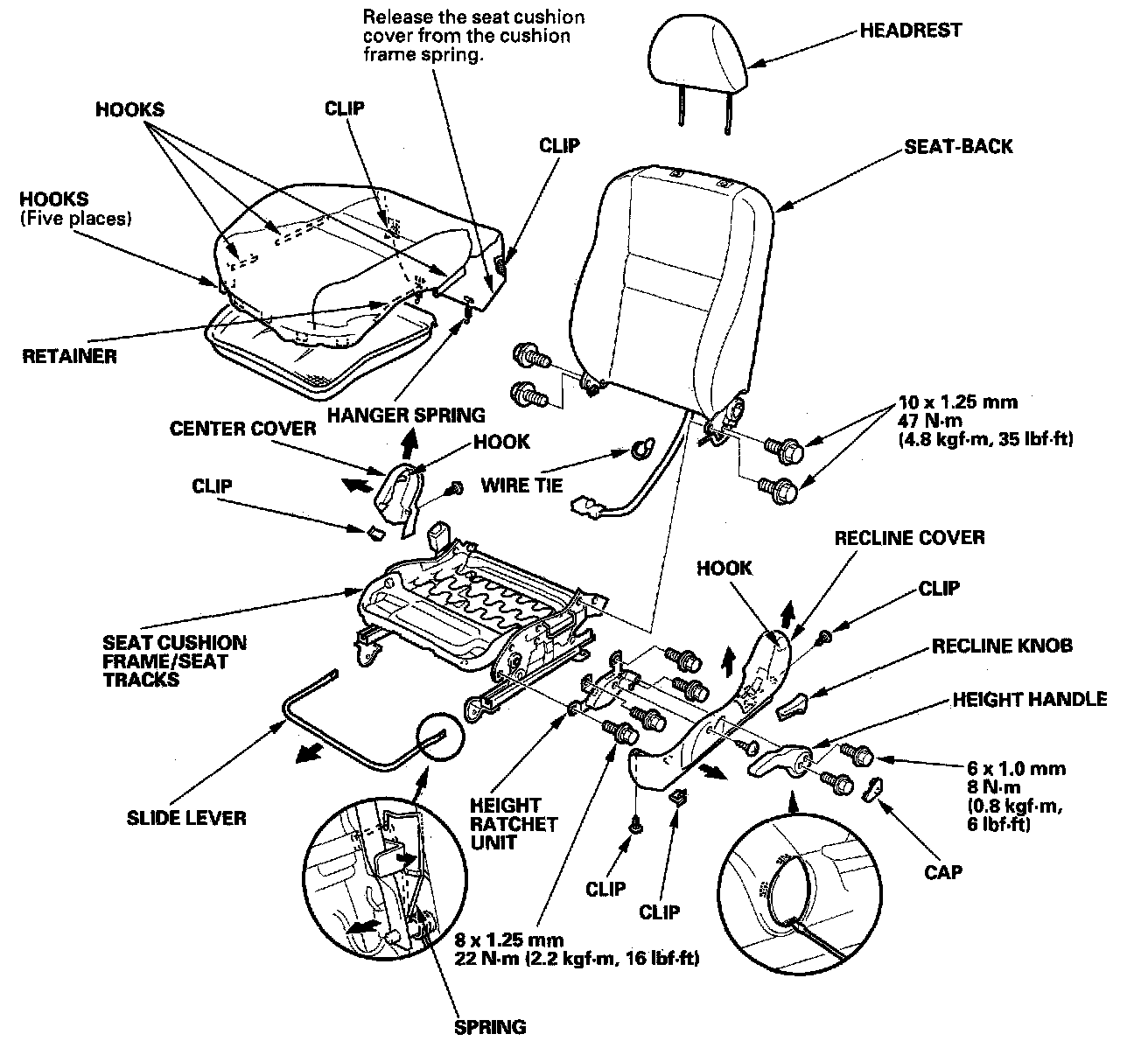 Front Seat Disassembly/Reassembly - Manual Height AdjustableFor some models: SR6 components are located in this area. Review the SRS component locations, and the precautions and procedures in the SRS section before performing repairs or service.
