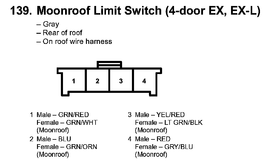 139. Moonroof Limit Switch (4-door EX, EX-L):