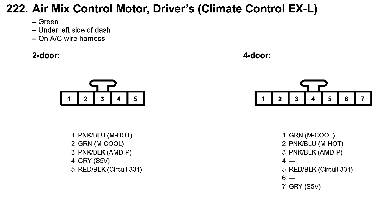 222. Air Mix Control Motor, Driver's (Climate Control EX-L):