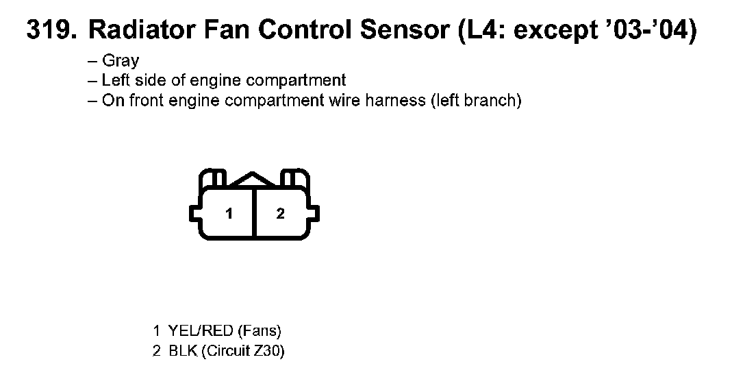 319. Radiator Fan Control Sensor (L4: Except '03-'04):