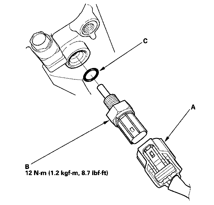 6. Install the sensor in the reverse order of removal with a new O-ring (C).