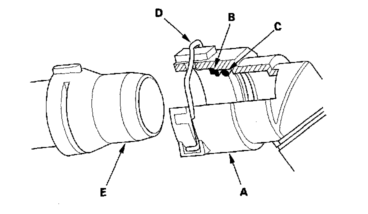 25. Check the lock (D). If the lock is damaged or deformed, replace it. When installing the new lock on the connector, press it straight down along the groove.