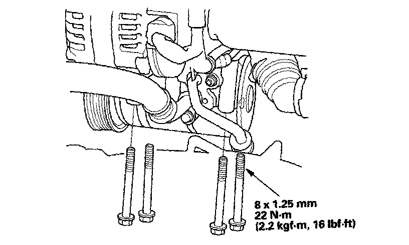 13. Tighten the nuts securing the transmission lower front mount and transmission lower rear mount.