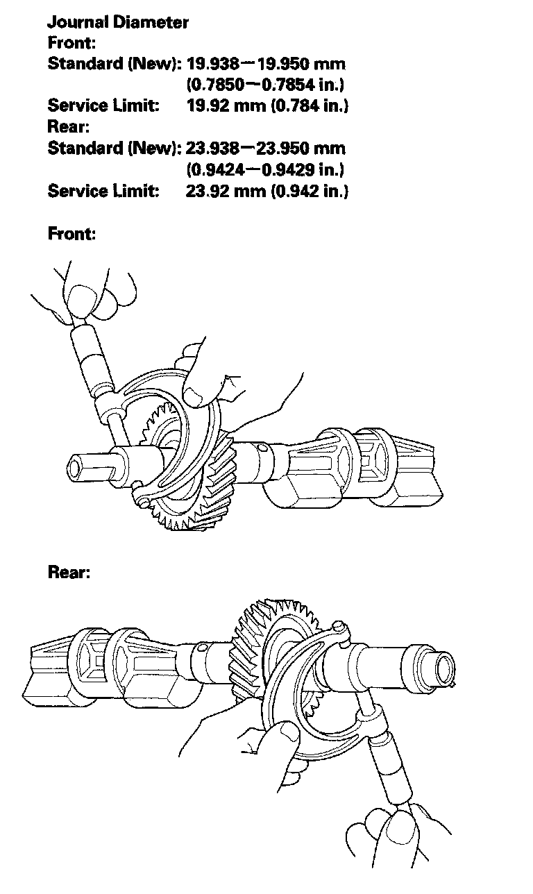 5. Measure the diameters of the No. 1 journals on the front balancer shaft and rear balancer shaft.