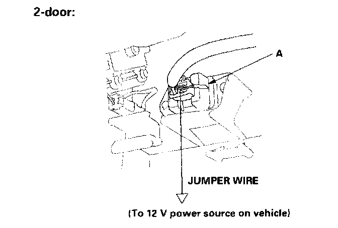 5. Supply 12 volts to the No.1 (4-door) or No.4 (2-door) cavity of the power transistor connector with a jumper wire.