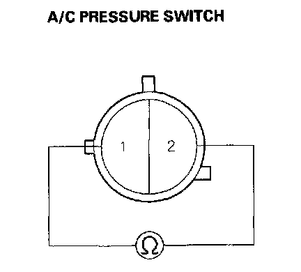 6. Check for continuity between the No.1 and No.2 terminals of the A/C pressure switch.