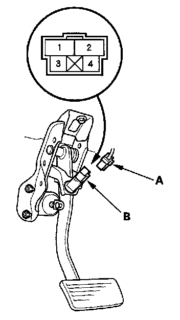 Brake Pedal Position Switch Test1. Disconnect the 4P connector (A) from the brake pedal position switch (B).