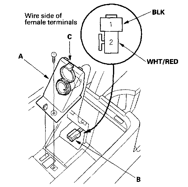 5. Turn the ignition switch to ACC (I), and check for voltage between the No.2 terminal and body ground. There should be battery voltage.