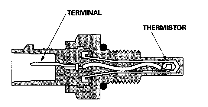 The ECT sensor is a temperature dependent resistor (thermistor). The resistance of the thermistor decreases as the engine coolant temperature increases.