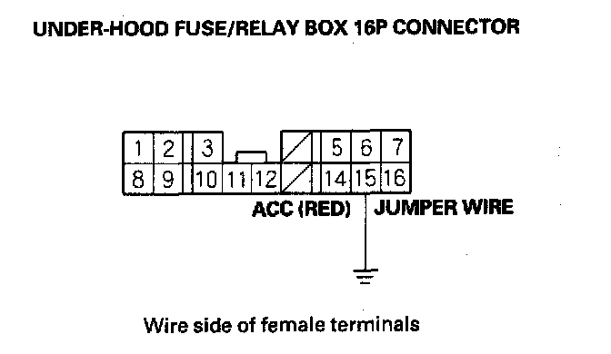 9. Momentarily connect under-hood fuse/relay box 16P connector terminal No.15 to body ground with a jumper wire several times.