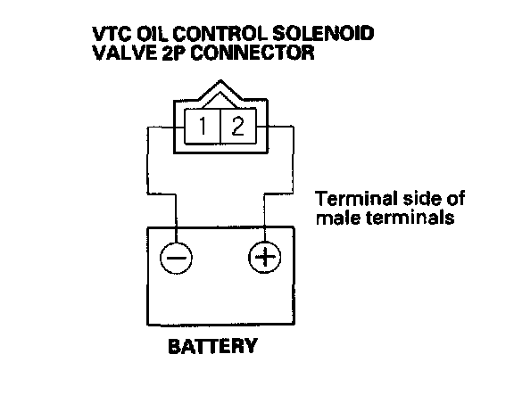 5. Connect the battery positive terminal to VTC oil control solenoid valve 2P connector terminal No.2.