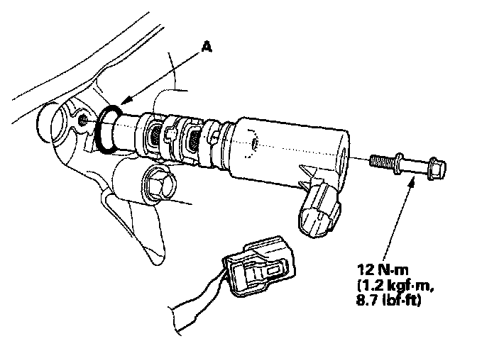 VTC Oil Control Solenoid Valve Removal/Test/Installation1. Disconnect the VTC oil control solenoid valve connector (A).