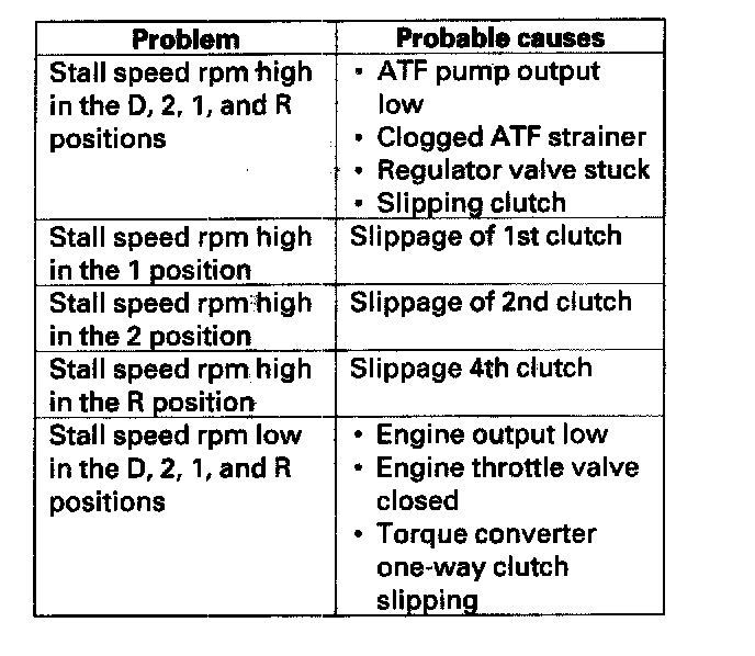 Stall Speed Test1. Make sure the transmission fluid is filled to the proper level.