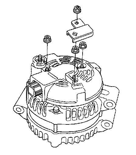 4. Remove the harness stay and the three flange nuts from the alternator.