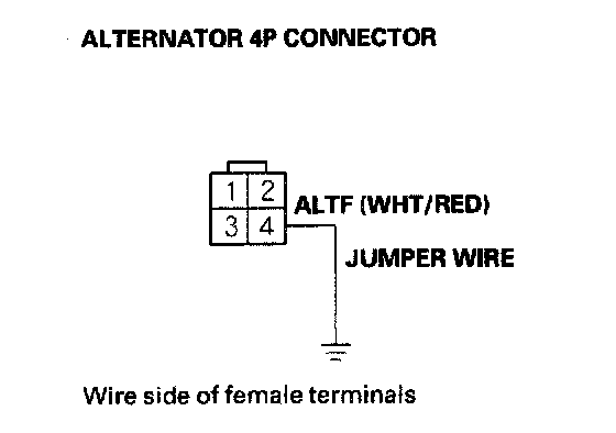11. Connect alternator 4P connector terminal No.4 to body ground with a jumper wire.