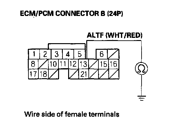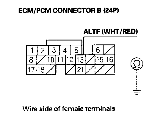 16. Check for continuity between body ground and ECM/PCM connector terminal B13.