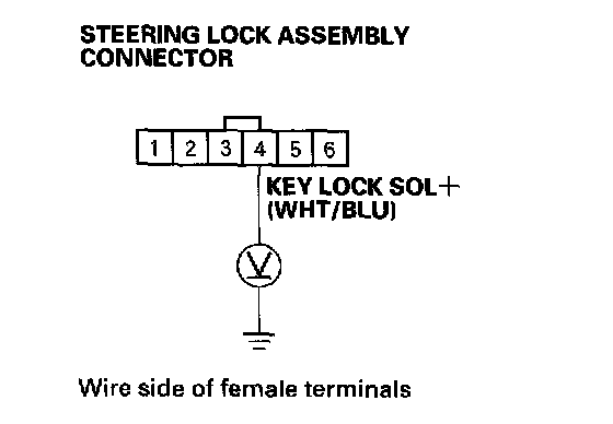 5. Check for the voltage between the No. 4 terminal of the steering lock assembly connector and body ground.