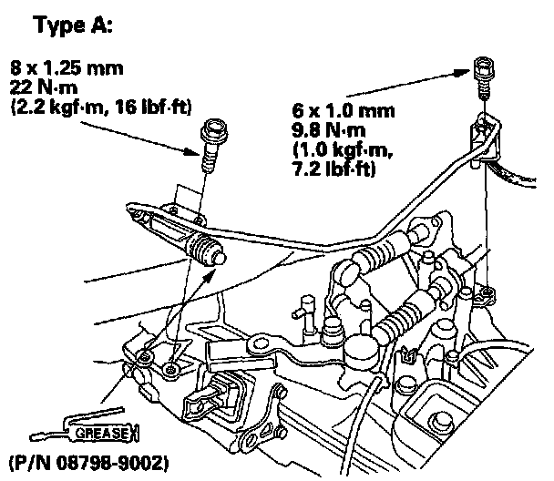 44. Apply super high tamp urea grease (P/N 08798-9002) to the end of the cylinder rod. Install the slave cylinder. Take care not to bend the clutch line.