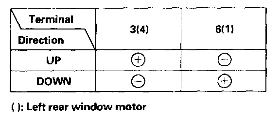 3. Test the motor by connecting battery power and ground according to the table. When the motor stops running, disconnect one lead immediately