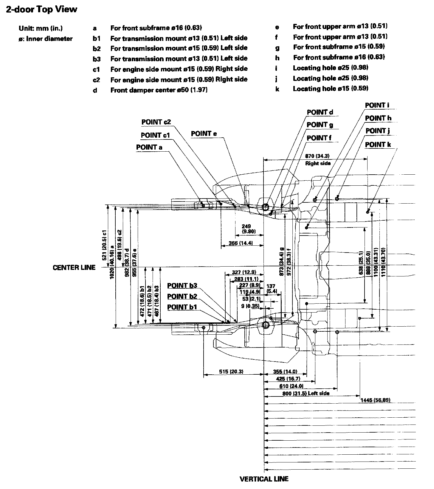 Frame Repair Chart - 2-door Top View Part 1 Of 2: