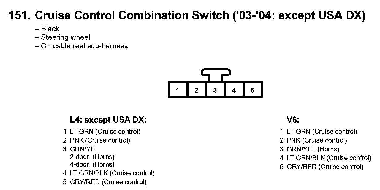 151. Cruise Control Combination Switch ('03-'04: Except USA DX):