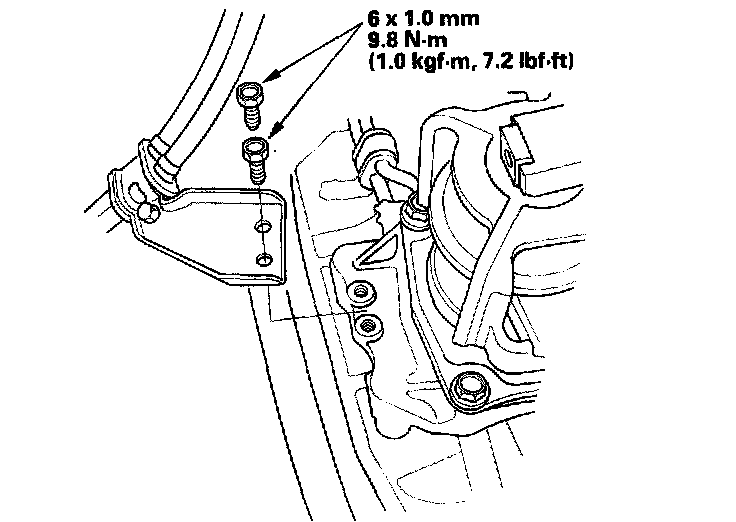16. M/T model: Tighten the two bolts securing the shift cable bracket.