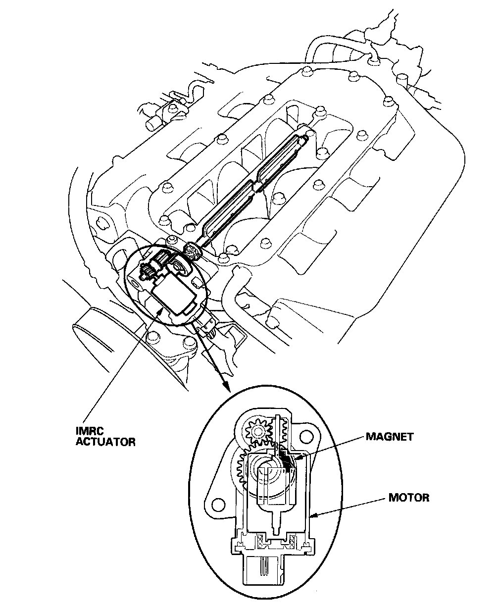 Engine power is achieved by closing and opening the intake manifold runner control (IMRC) actuator. When the valve is closed, there is high torque at low engine speed. When the valve is open, there is high torque at high engine speed.