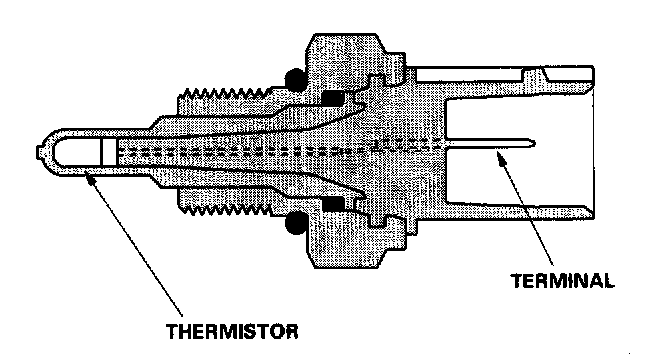 The ECT sensor is a temperature dependent resistor (thermistor). The resistance of the thermistor decreases as the engine coolant temperature increases.