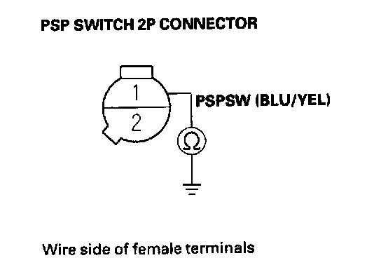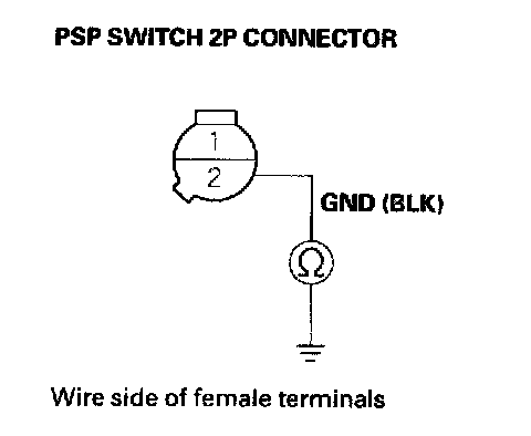 11. Check for continuity between PSP switch 2P connector terminal No.1 and body ground.