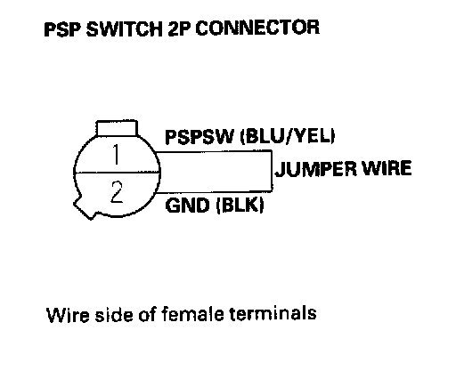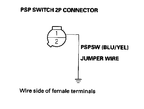17. Remove the jumper wire from the PSP switch 2P connector.