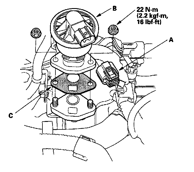 4. Install the valve in the reverse order of removal with a new gasket (C).