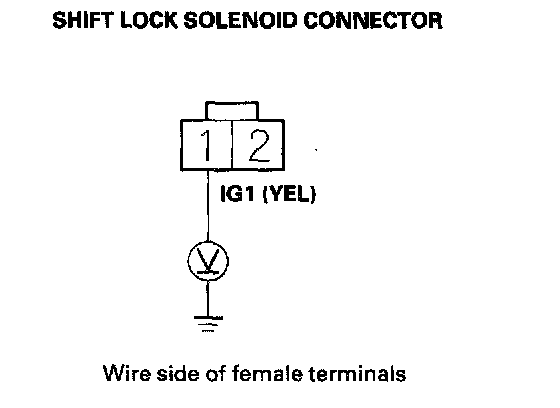 NO - Check for a blown No. 21 (7.5 A) fuse in the under-dash fuse/relay box. If the fuse is OK, repair open or short in the wire between the shift lock solenoid connector and the under-dash fuse/relay box.