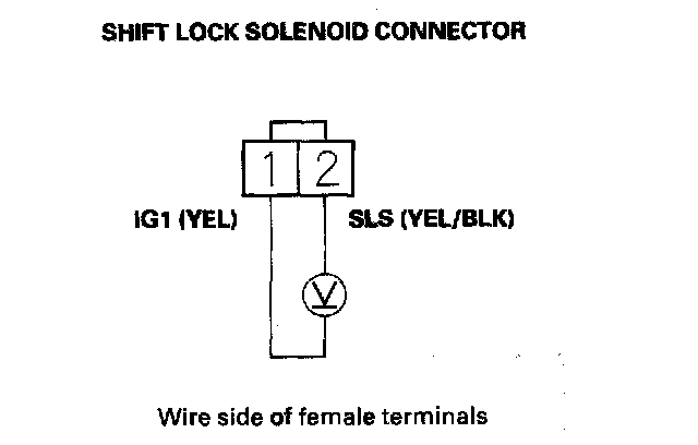 6. Measure the voltage between shift lock solenoid connector terminal No. 1 and body ground.
