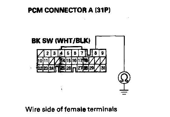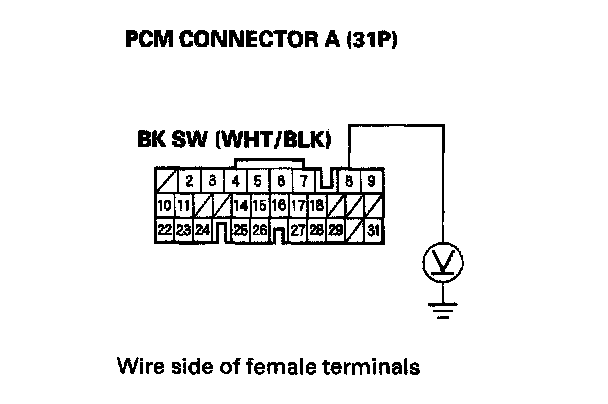 18. Measure the voltage between PCM connector terminal A8 and body ground while pressing the brake pedal and when the brake pedal is released.