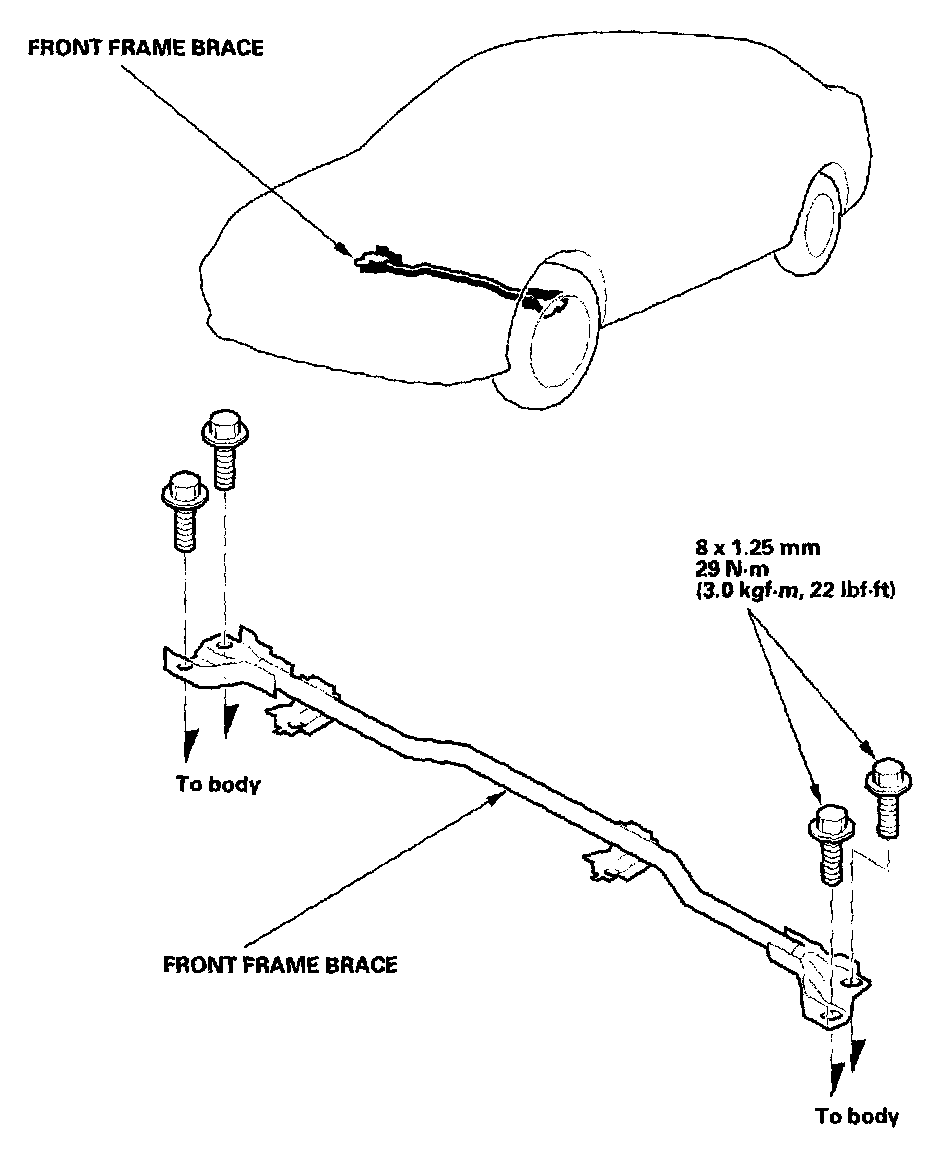 After loosening the subframe mounting bolts, be sure to replace them with new ones.