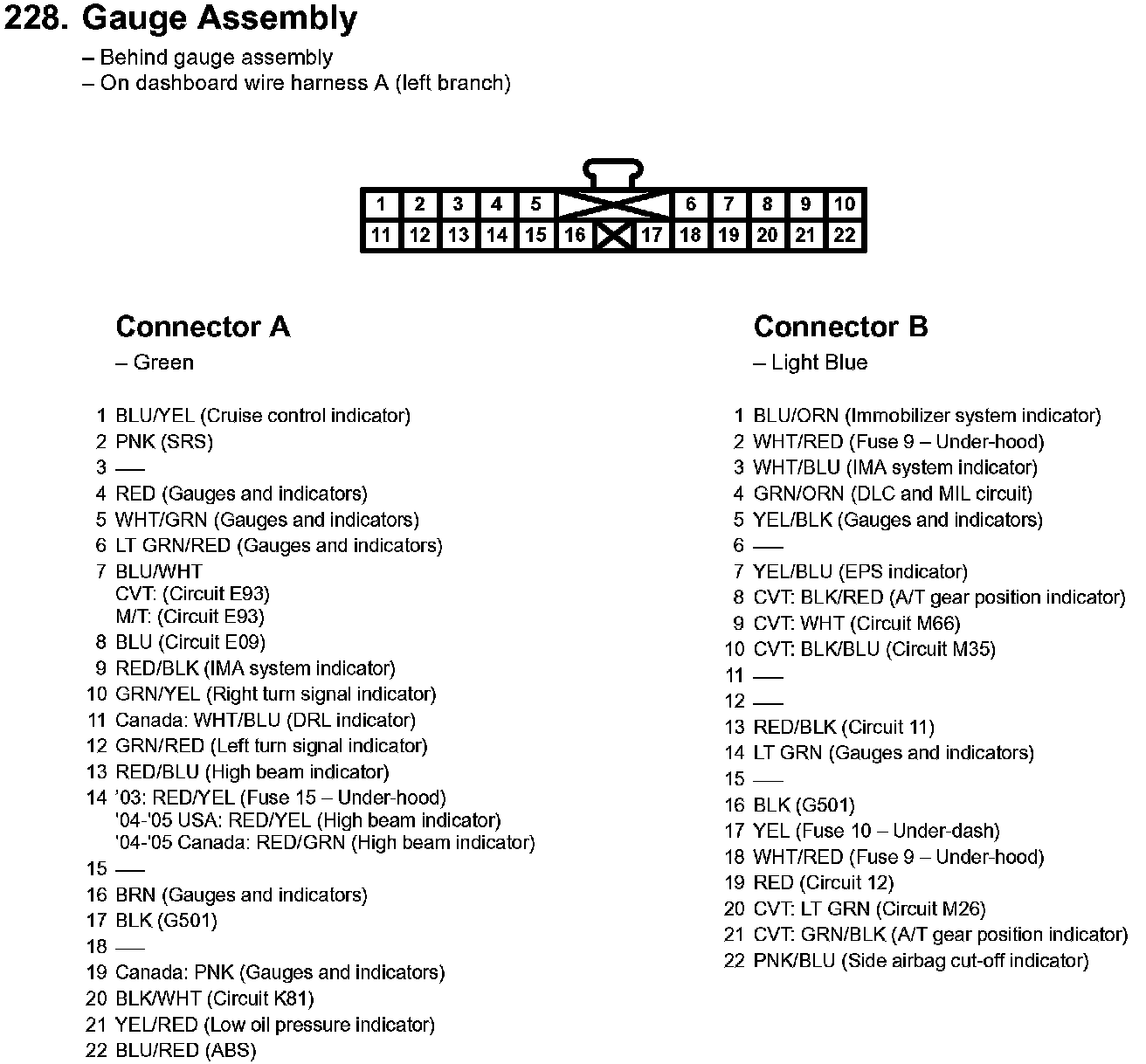 Gauges - Component Location Index: