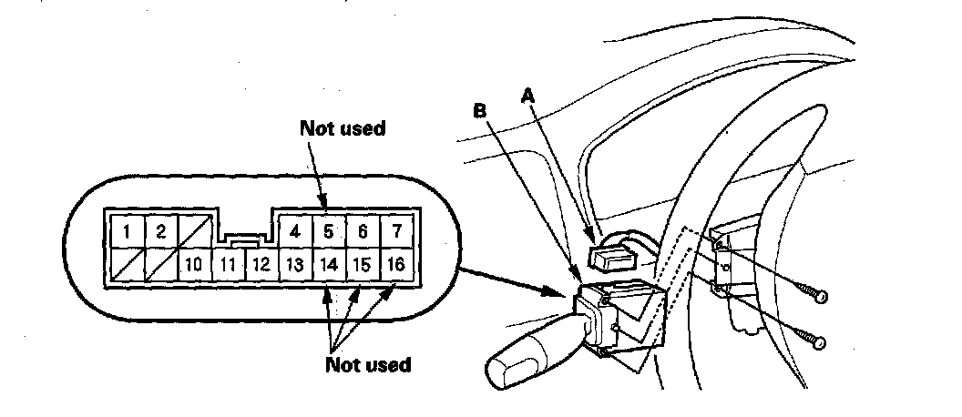 3. Disconnect the 16P connector (A) from the combination light switch (B).