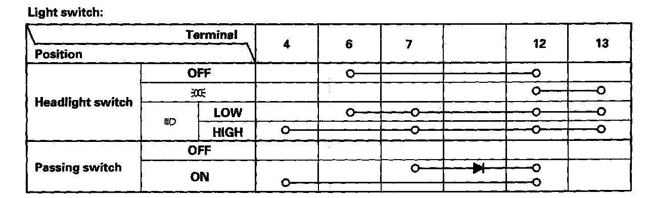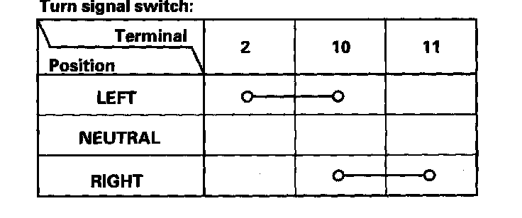- If the terminals look OK, check for continuity between the terminals in each switch position according to the tables.