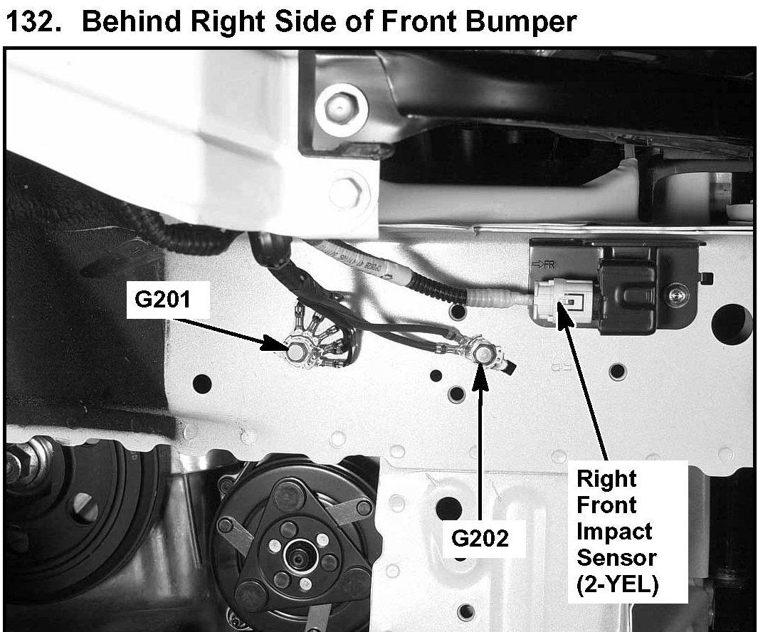 132. Behind Right Side Of Front Bumper: