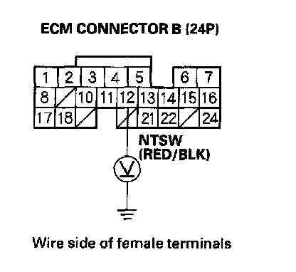 5. Measure voltage between ECM connector terminal B12 and body ground.