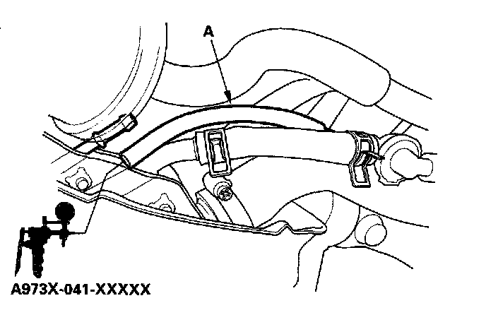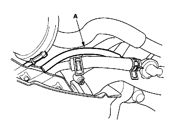 3. Disconnect the fuel tank vapor recirculation tube (A), and connect a vacuum pump to the vapor recirculation tube.
