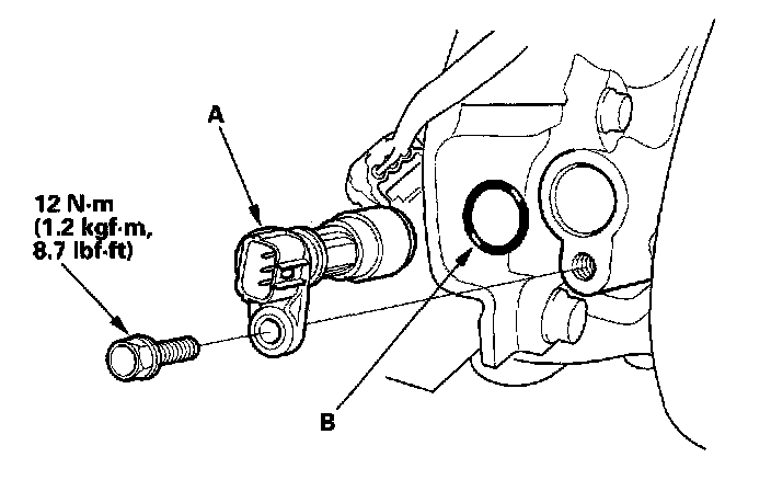 Install the sensor in the reverse order of removal with a new O-ring (B).